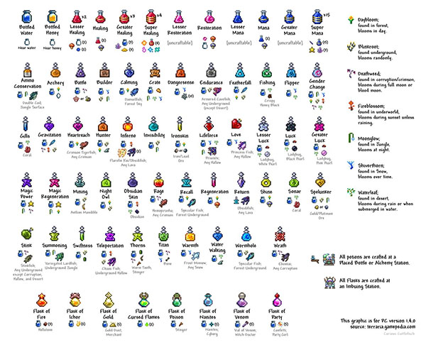 所有的武器和饰品都可创造、或从npc处购买、或在箱子中生成时或掉落时都会随机产生装备品级和稀有度(根据颜色区分)。玩家可以通过工匠处重铸从而改变装备的稀有度,同时装备的属性颜色也会随之更改,共有百种属性供你选择。