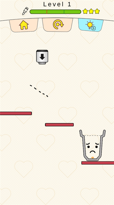 游戏中,我们遇到了一个可爱的花盆,它因为缺水而感到难过。玩家的任务就是通过画线的方式,把水流引到花瓶里,让花朵绽放。这种玩法和超受欢迎的《快乐玻璃杯》有些相似,都基于简单的物理规则。