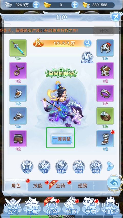 - 装备系统:穿戴装备能显著提升攻击、生命、防御等属性。集齐六件达标装备可激活套装效果。