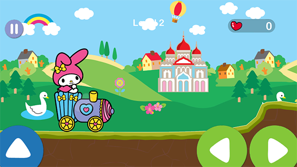 - 可爱的凯蒂猫和其他角色将在各种赛道上飞驰,赛道上还有金币和道具可以收集。