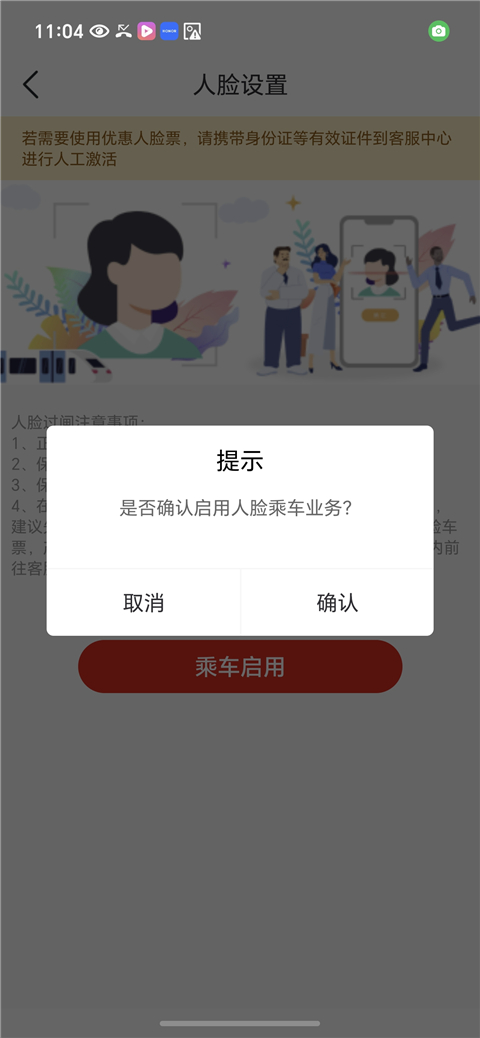 温馨提示:首次使用需要录入人脸信息和实名认证,请确保光线充足、网络正常。