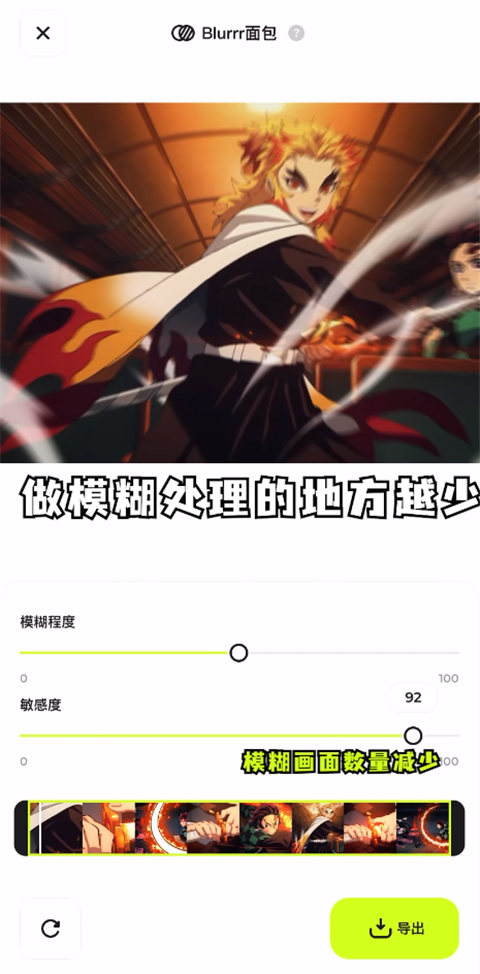 - 设置敏感度参数:敏感度高时,模糊区域会减少;低时则更多区域会被处理。