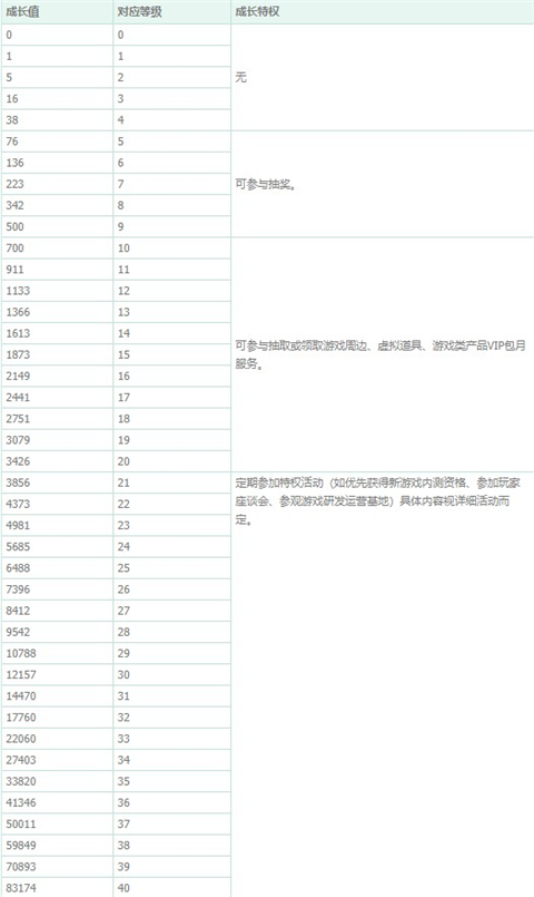 腾讯游戏根据成长值的增长可进行升级,等级不用享受的特权不同。升级规则如下: