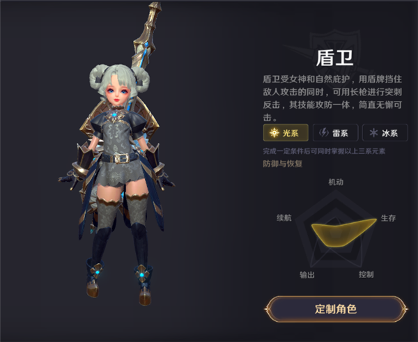盾卫受女神和自然庇护,用盾牌挡住敌人攻击的同时,可用长枪进行突刺反击,其技能攻防一体,简直无懈可击。