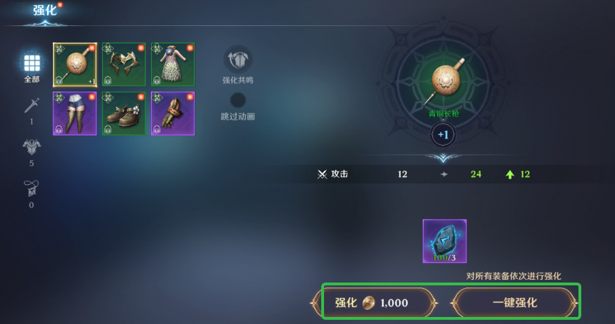 - 强化武器能提高攻击力、生命值和防御属性;