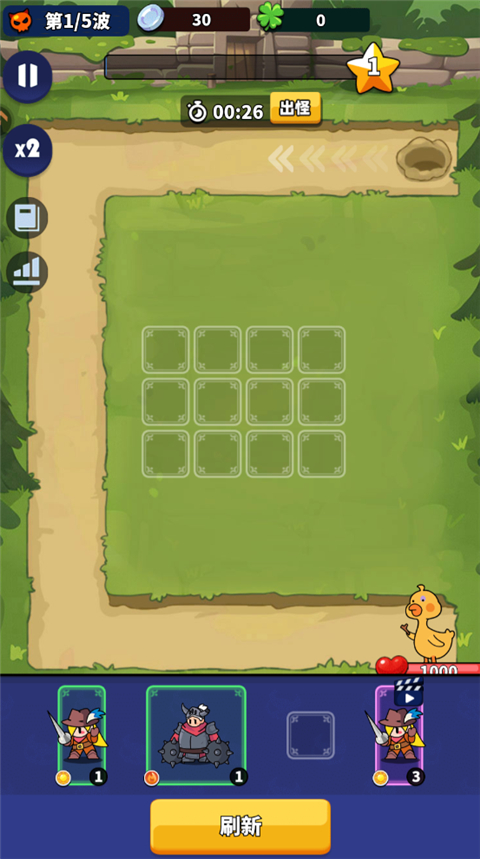 小鸡守卫是一款策略塔防类型的手机游戏,玩家需要搭配8位不同角色进入关卡,合理利用有限的放置格子,通过刷新和摆放角色来击败敌人。每个角色都有独特的属性和消耗资源,合理安排能提升战斗效率。