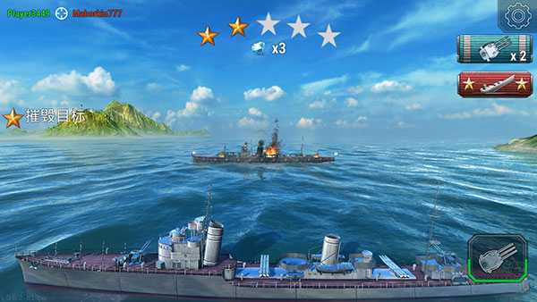 - 第三个目标是在近距离摧毁敌方战舰,对准敌人后点击右下角的开火按钮就能完成。