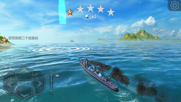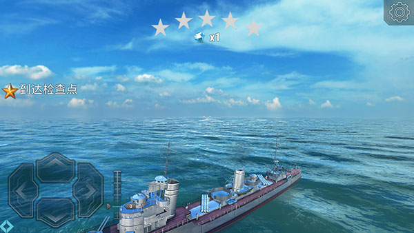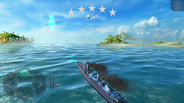 - 第一个目标是到达检查点,点击左下角的前进按钮,战舰就会自动加速行驶。