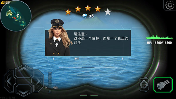 - 第四个目标是攻击远距离的敌军战舰,这时可以使用左侧的望远镜功能来辅助瞄准。