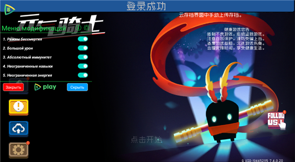 1、由于当前版本没有游客登录模式,玩家免费购买会失败,现在需要下载元气骑士7.3破解版点击游客模式登录