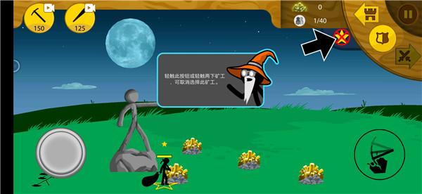 3、选择左上角的图标来召唤火柴人,点击火柴人可以亲自操控他们。