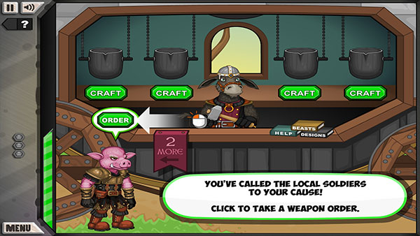 3、在这里会有源源不断的战士前来,点击order为它们打造武器吧;