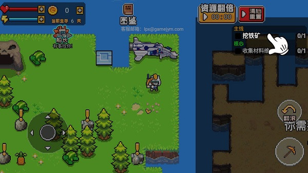 游戏背景:意外坠机荒岛的主人公需要在岛上生存下去,收集资源打造武器,收集宝石修复飞船,最终成功逃出!