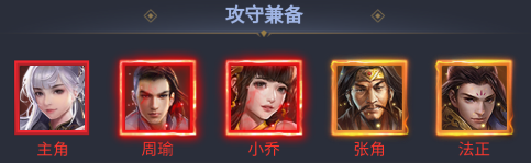 - 攻守兼备:周瑜、小乔、张角、法正