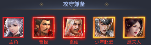 - 攻守兼备:曹操、袁绍、少年赵云、糜夫人
