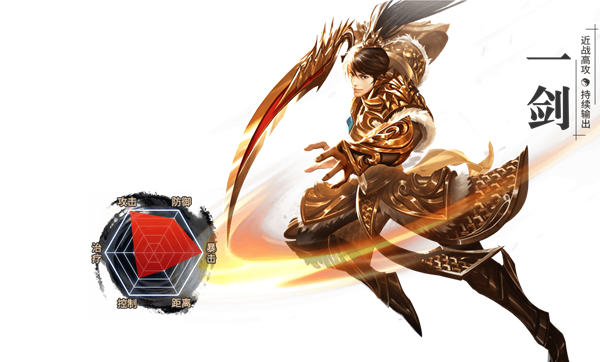 一剑属于近战职业,他修炼金属性的内功,使用一柄大剑作为武器,一剑的攻击能力和暴击能力在所有角色中无出其右。作为一名掌握乾光之力的侠客,一剑有着最强的力量,可以对身边的敌人造成大量的伤害,在正面交锋浴血奋战时,一剑无疑是最好的选择!