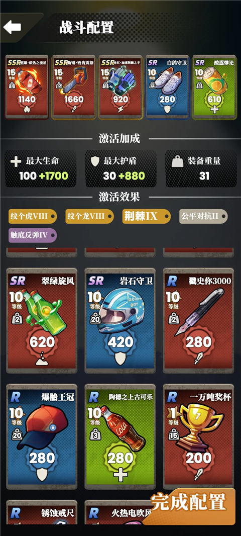 - 前期SSR碎片不足时可以使用这套装备。优点:速度快,伤害高且有续航能力,buff效果不错,可以用其他武器替代,比如游戏机换成魔法棒。