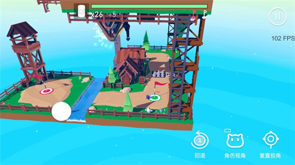 从另一个角度看过去,发现所有的目标点都在上方平面上。这时候可以通过触发机关来切换上下平面的引力大小。