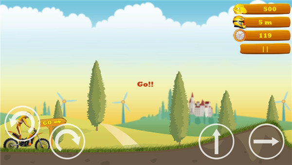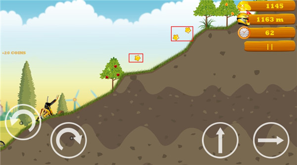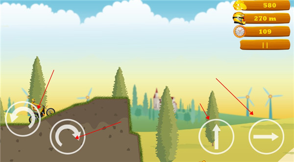 - 左边按键用于翻转摩托车,右边按键用于跳跃和加速