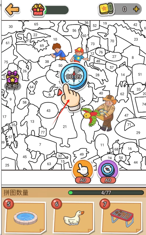 5、适当使用道具。指南针道具的性价比远高于提示手指;只要手速够快,指南针能在10秒内帮你解决多个贴纸。