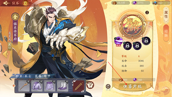 - 在详细信息页面,点击上方的“侠客升级”按钮即可。
