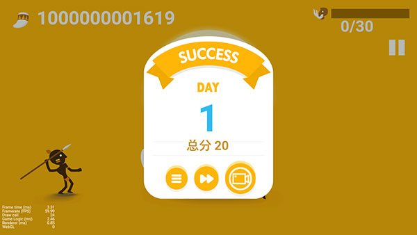 3、在每一关卡中,酋长与猛犸象都有一定的距离,玩家需点击酋长做出反向的投掷动作。