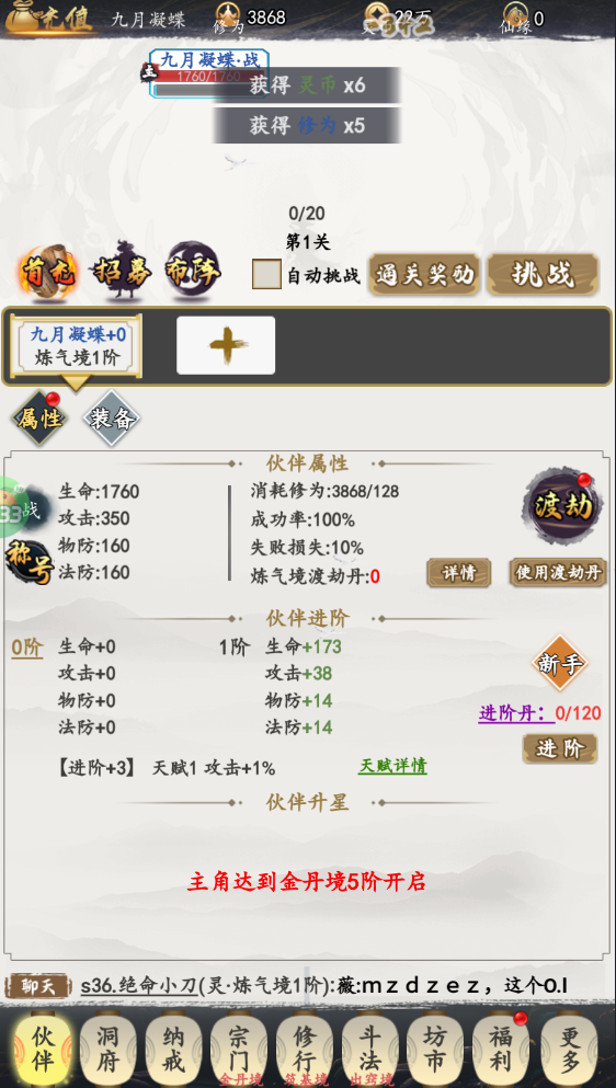 - 历练玩法:收集伙伴渡劫丹材料,在书阁炼制。