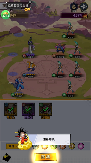 4、上场卡牌点击挑战,游戏人物是全自动的。