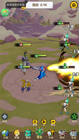 - 收集角色后,点击“冒险”开始旅程。