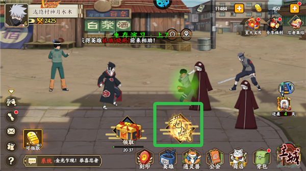 3、开局领取超影佐助晓袍,每天可以领取648无门槛代金券,挂机、闯关或者签到还可以获得海量奖励。