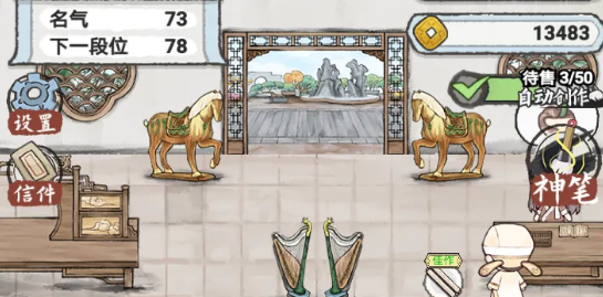 手动创作的玩法可以让你亲身体会制作古画的过程,墨竹图、秋菊图、虾戏图、鸳鸯图、骏马图等数十种名画类别供你创作,每次的创作可能由于你的技艺水平和状态会有不同的表现产生,伴随着游戏进程的深入和绘画技艺的提高,还能逐步解锁更多有趣的名画供绘制,如果你觉得自己手动创作麻烦,时间要花在经营上,那也可以使用自动创作功能哦。