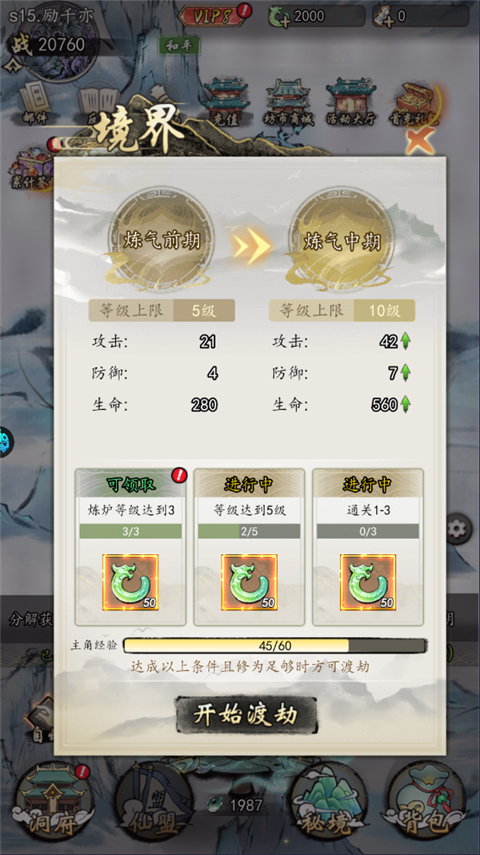 - 达到一定条件后解锁仙盟和仙缘系统。
