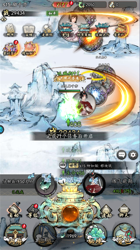 当你实力增强后,还可以加入仙盟,与道侣一起闯荡修真世界,和其他玩家组队征战四方,争夺最强仙盟称号。