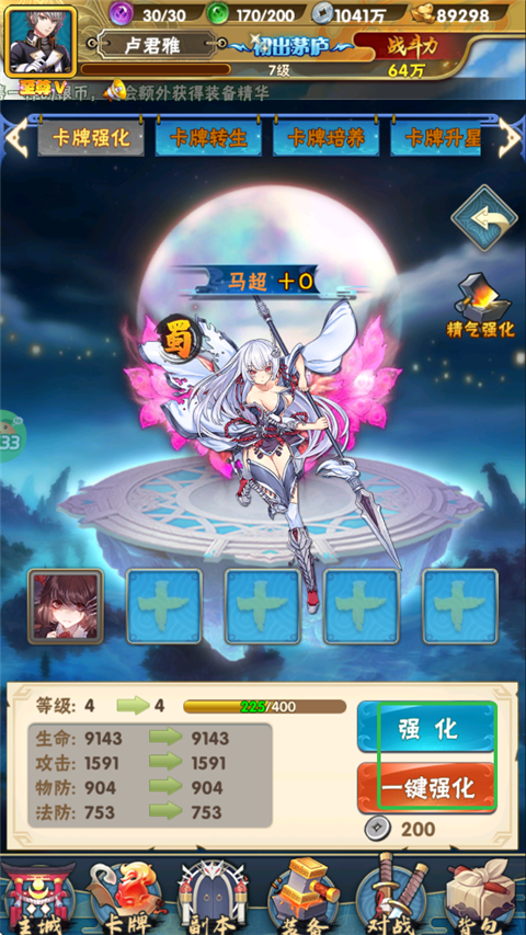 加入卡牌碎片,让卡牌升级强化,增加攻击、物防、法防等属性值。