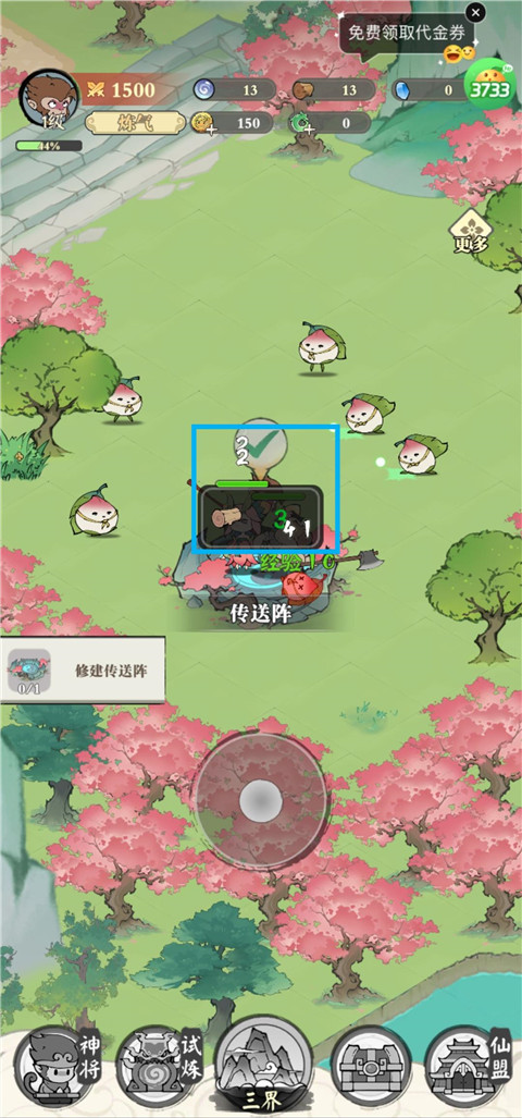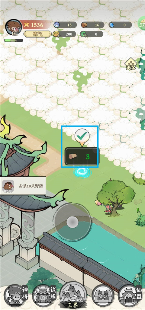 游戏中,你需要砍伐灵木来清除迷雾,这样就能继续前进。同时,你还会遇到被怪物抓走的仙友,需要把他们救出来。游戏里还有宝箱和寻仙玩法,可以获得哪吒、嫦娥、黑悟空等强力角色帮忙。