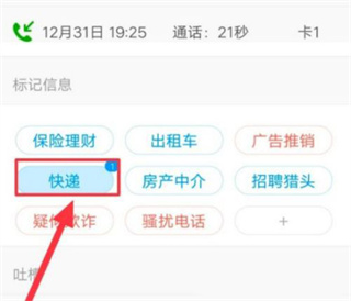 在原来号码标记的地方,重新点击一下标记就可以了。比如原来对这个号码标记的是快递,在快递上重新点一下就可以取消标记了。