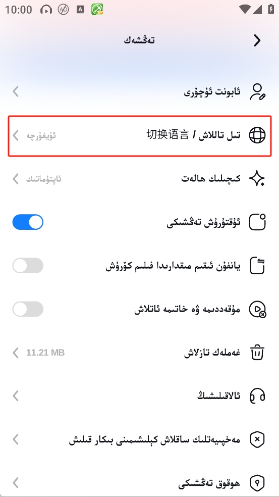 - 进入设置界面,选择所需语言(包括维吾尔文和中文)。