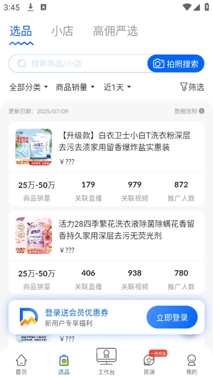 - 根据分类、销量和增长率筛选商品,了解市场需求。