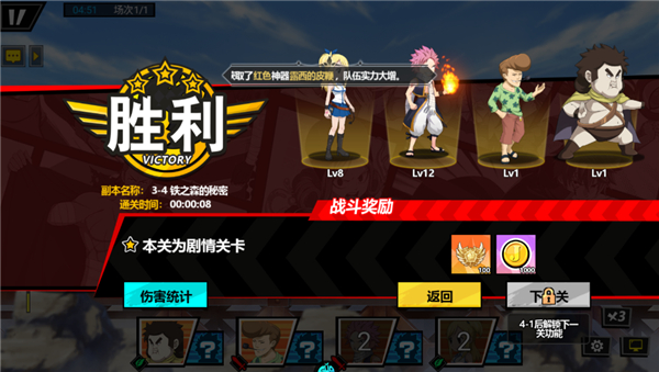 - 战斗采用全自动模式,等待片刻就能获得通关奖励。