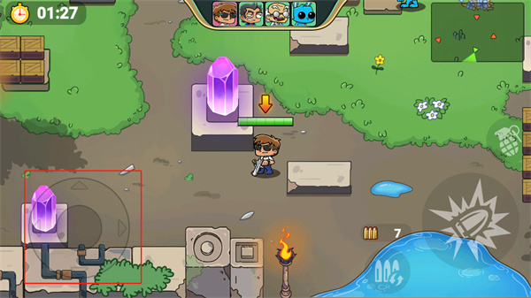 - 使用左下角的摇杆控制人物移动。