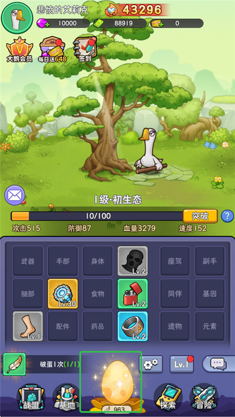 1、进入游戏,玩家需要点击金蛋砍树以开启宝箱。
