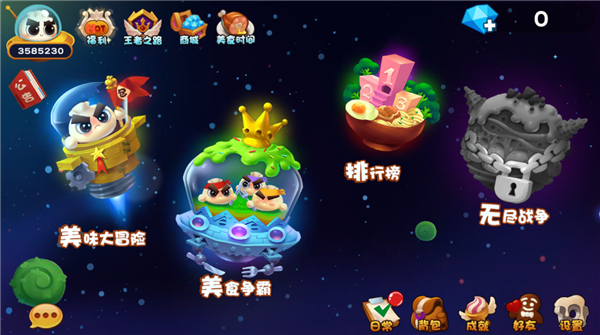 游戏里有很多不同的模式可以挑战,比如“美味大冒险”。每个关卡都需要你一步步攻克才能解锁下一关。你需要在规定时间内打败敌人,占领他们的建筑才算胜利。战斗时,你可以点击敌方的美食发起攻击,击败它们就能获胜。如果 enemy food 的数量超过了你的食物,它们就会变成敌人,加入敌军阵营。