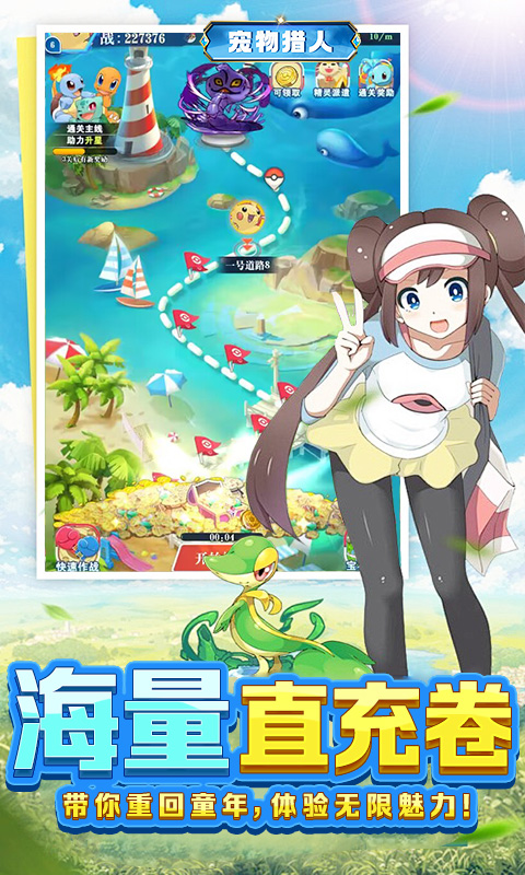 宠物猎人是一款经典卡通风格冒险手游。以经典的日本超人气动漫“口袋妖怪”为背景题材而打造,采用了日系卡通的画面风格,拥有多样化的人物角色,数百种不同外形、特色的宠物精灵,不同的精灵还有不一样的属性和技能,玩家可以不断的收集这里宠物精灵,打造属于自己的最强精灵阵容。游戏里融合了多种玩法,包括收集、养成、冒险、策略、挂机等等,多种的游戏玩法给玩家们带来热血碰撞。除此之外,玩家登录还送传说神宠阿尔宙斯以及五星皮卡丘,可以帮助玩家更好的渡过新手期。最后游戏里拥有多张地图,多重关卡,宠物种类众多,可以给玩家丰富的游戏体验,对卡牌放置游戏感兴趣的玩家快来下载体验吧!