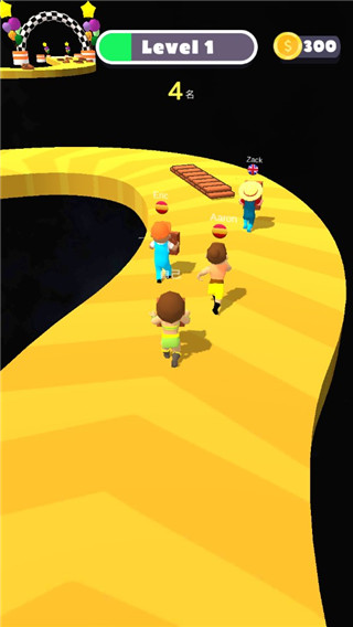 - 和众多玩家一起竞速,收集木板搭建桥梁,走捷径快速通关。