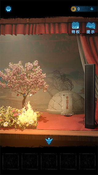 8、进入里面的房间摆放物品得到布球供奉在喜娃娃的神龛上,再进入右边的房间点到戏台得到提示来到舞台。