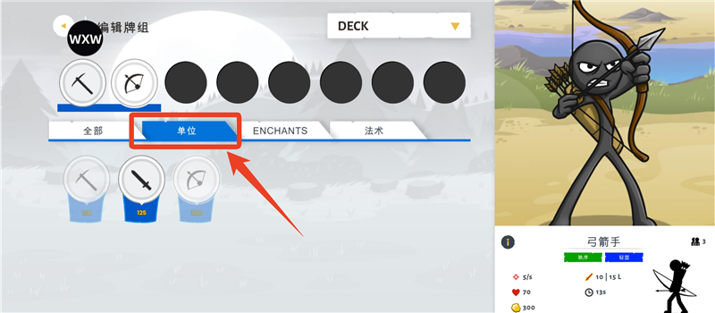 火柴人战争遗产3游戏怎么切换上阵兵种