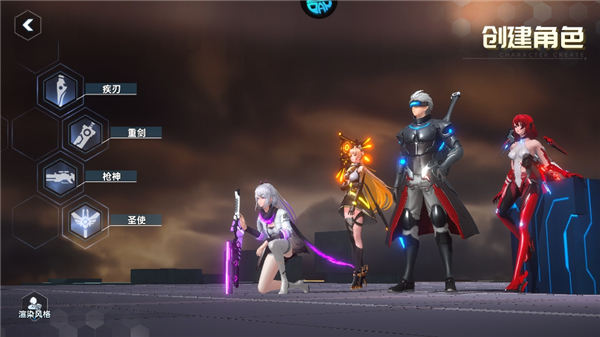 2、选择喜欢的职业创建角色,游戏中有重剑、疾刃、枪神、圣使四种职业。