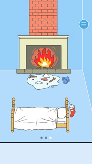 - 拖动屏幕到右侧,将雪人移到燃烧的壁橱前融化,获得蓝色水桶。