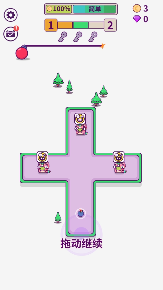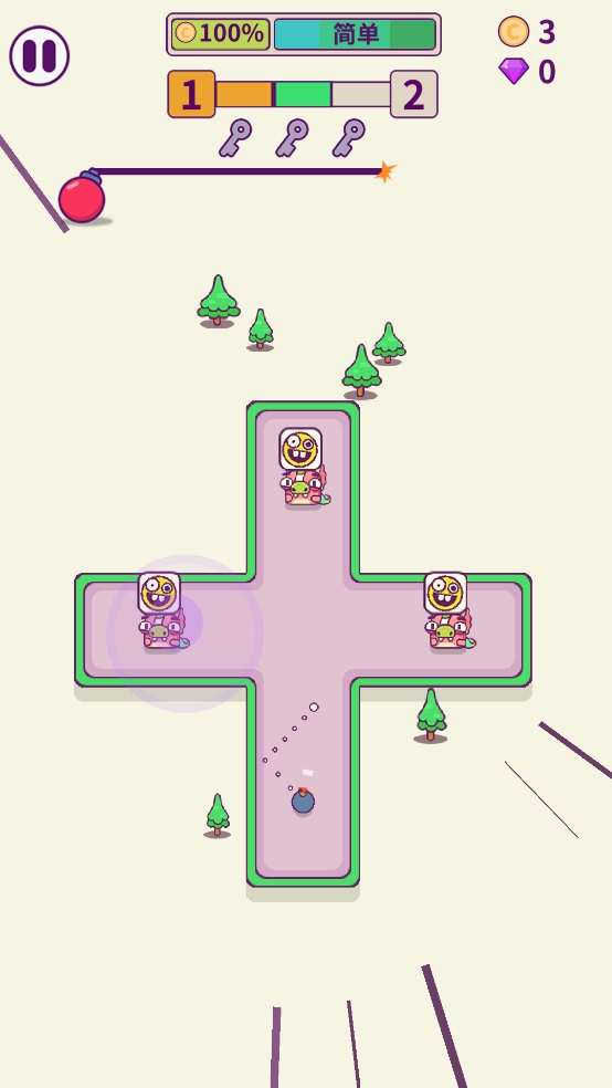 3、并且按住屏幕可减慢时间,在子弹时间中观察战局,选择改变炸弹的前进路线。