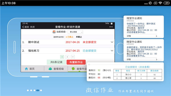外语通还提供多种作业类型,老师可以随时通过手机布置作业,并快速完成批改。同时,系统支持将作业结果分享给家长,方便家长了解孩子的学习情况。